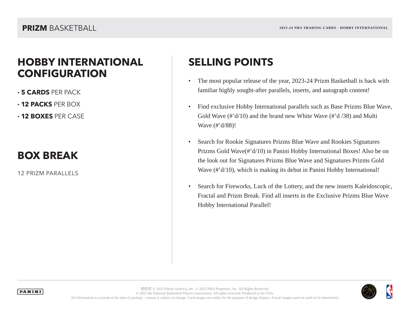 2023-24 Panini Prizm Basketball Hobby International Box